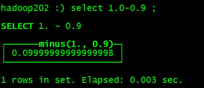 比如:12345.456223 让保留两位小数,Decimal64 (2) = Decimal (18-2,2) = Decimal (16,2) 小数点前保留 16 位,小数点后保留 2 位,12345.45。