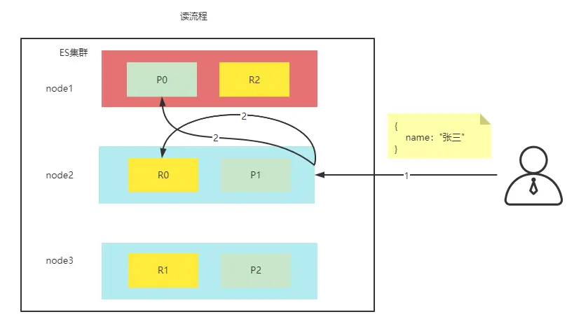 - 客户端请求集群(任意)节点,找到的节点会被称为协调节点,图中为指定 node2 为协调节点
