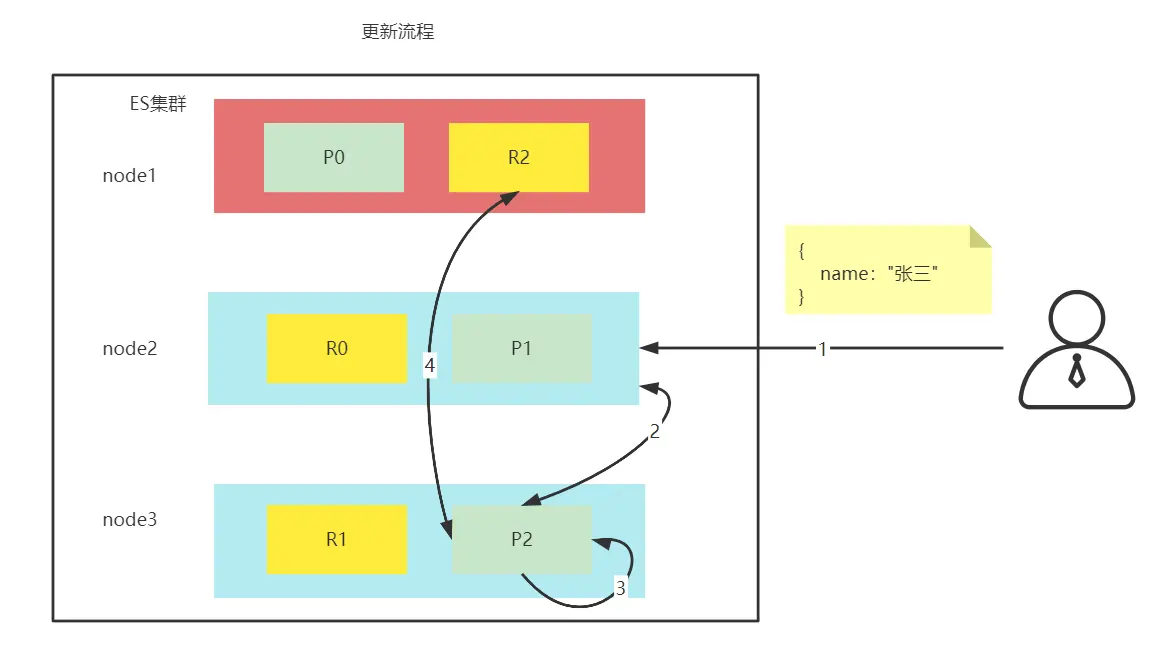 - 修改成功后修改副本,副本修改成功后会通知主分片,主分片在反馈给客户端