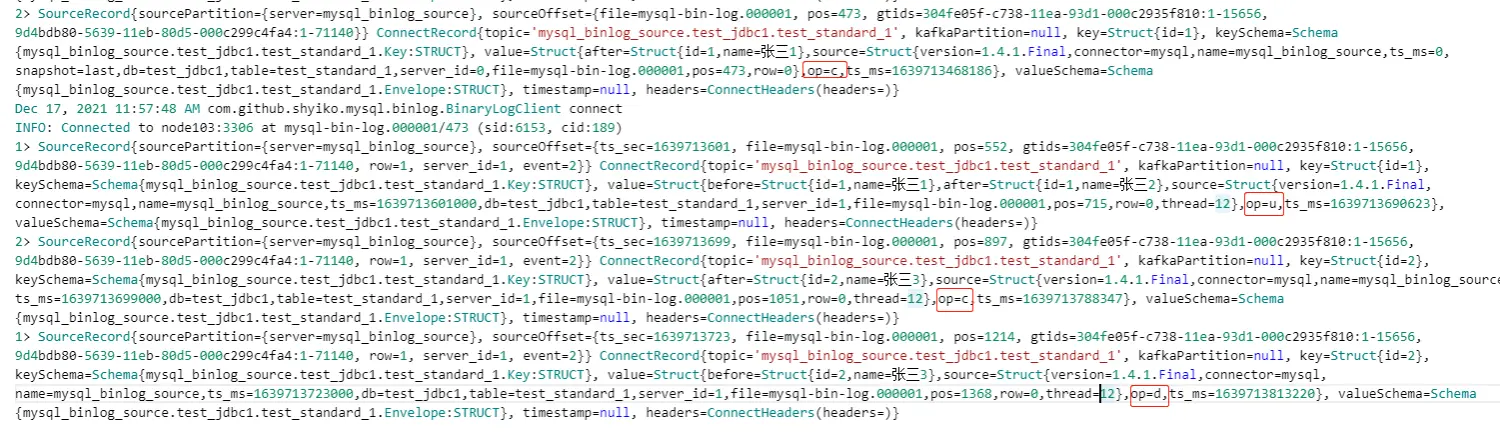 通过 op 字段,可以解析出对数据的操作行为,是删除(d),修改(u)还是新增(c),