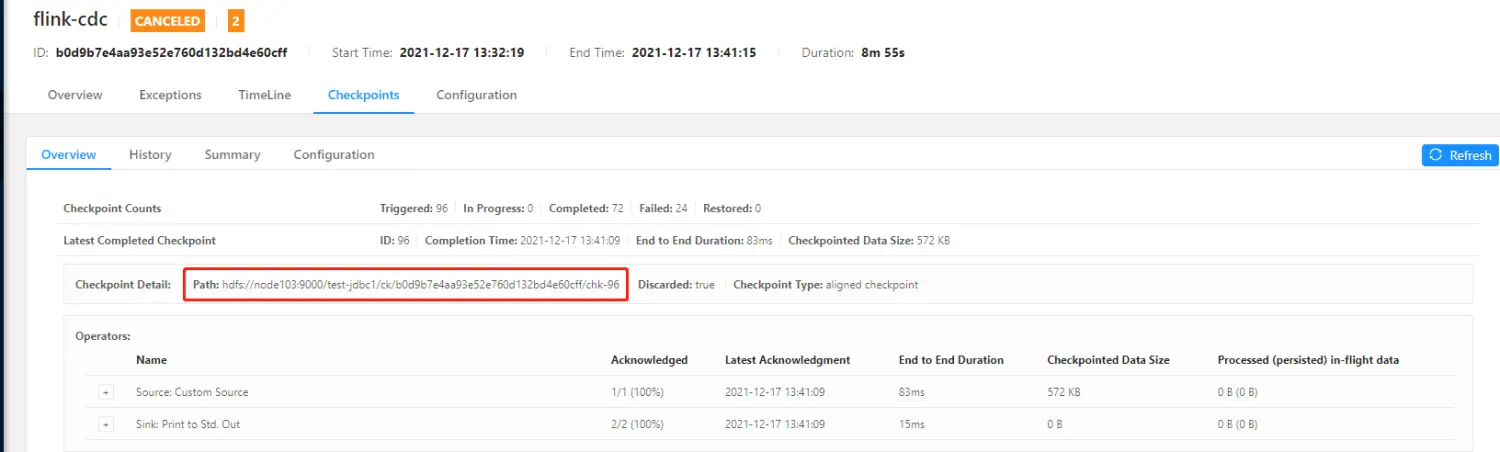 但如果你手动 cancel job 之后,会发现 在 hadoop 中并不会保留这个 chk-xx 这个文件,必须使用 save point 的命令触发保存才有效。