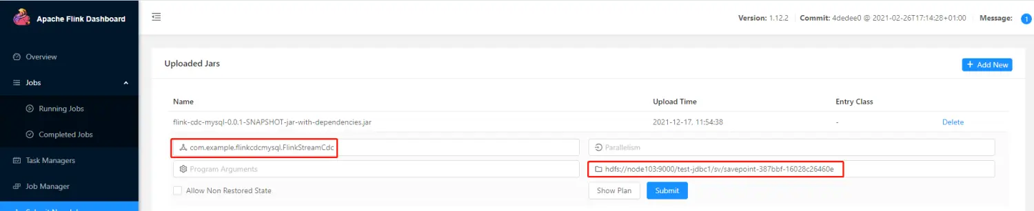 ./flink run -s hdfs://node103:9000/test-jdbc1/sv/savepoint-387bbf-16028c26460e -c com.example.flinkcdcmysql.FlinkStreamCdc xxxxx.jar