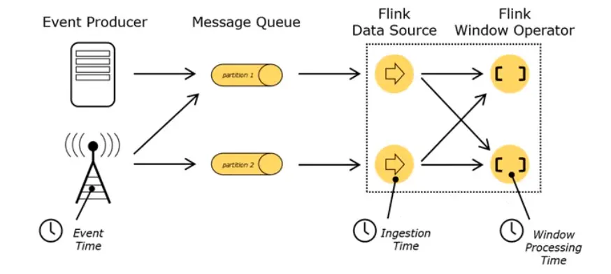 flink 有三种时间:EventTime,表示数据最初的触发时间;IngestionTime,数据进入 Flink 的时间,是 DataSource 拿到数据的时间;ProcessingTime,执行操作算子的本地系统时间,与机器相关。