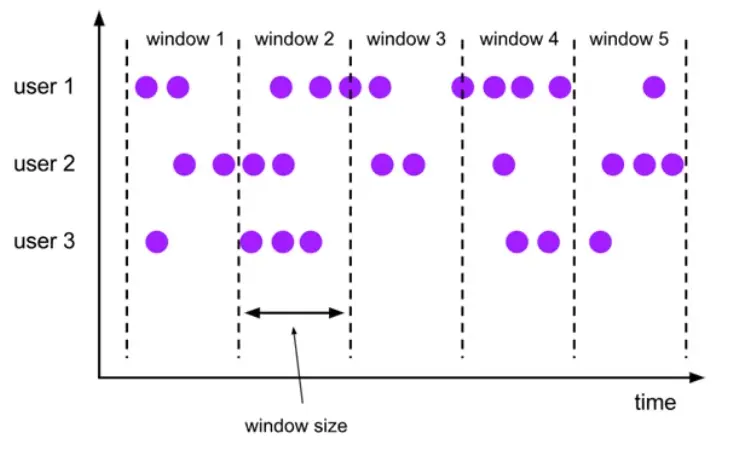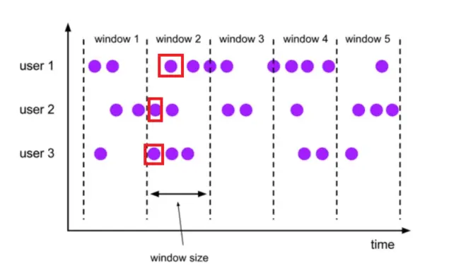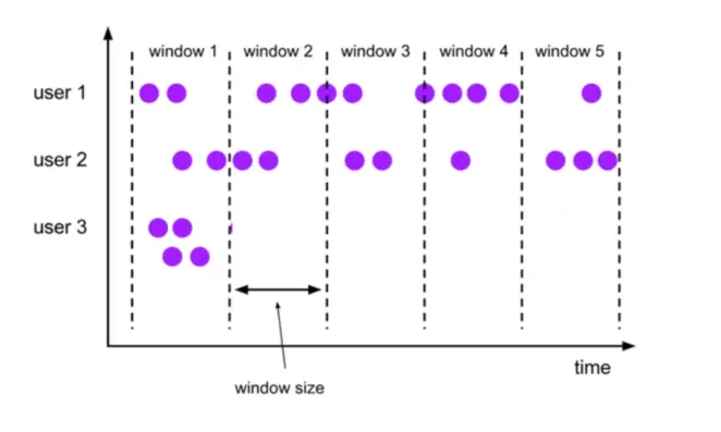 user1,2,3 就是并行任务,window1,2,3,4,5 都是桶,其中 window1 是最小 (时间) 的桶,只有 user1,2,3 数据的事件时间都大于 window1 的 windows size,window1 才会触发计算。
