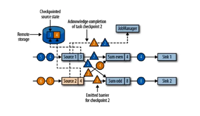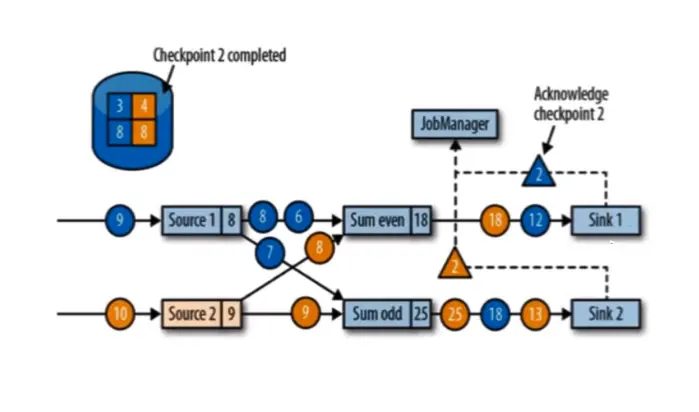 sink 任务向 JobManager 确认状态保存到 checkpoint 完毕,当所有任务都确认已成功状态保存到检查点时,检查点就真正完成了。