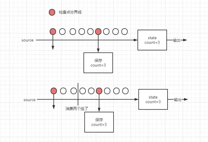 恢复的话,就会从第一个检查点分界线恢复,然后把数据,之后的数据回放。