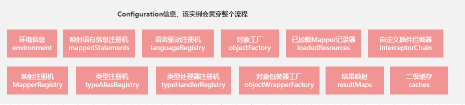 在整个文件解析之前,MyBatis 会先把一些信息进行提前初始化,也就是上图中 new Configuration() 阶段,该类最终会被多个 MyBatis 的类所引用并贯穿整个 MyBatis 工作流程,由于被引用的类太多,这里就不一一列举,我们只要知道他贯穿整个流程即可。