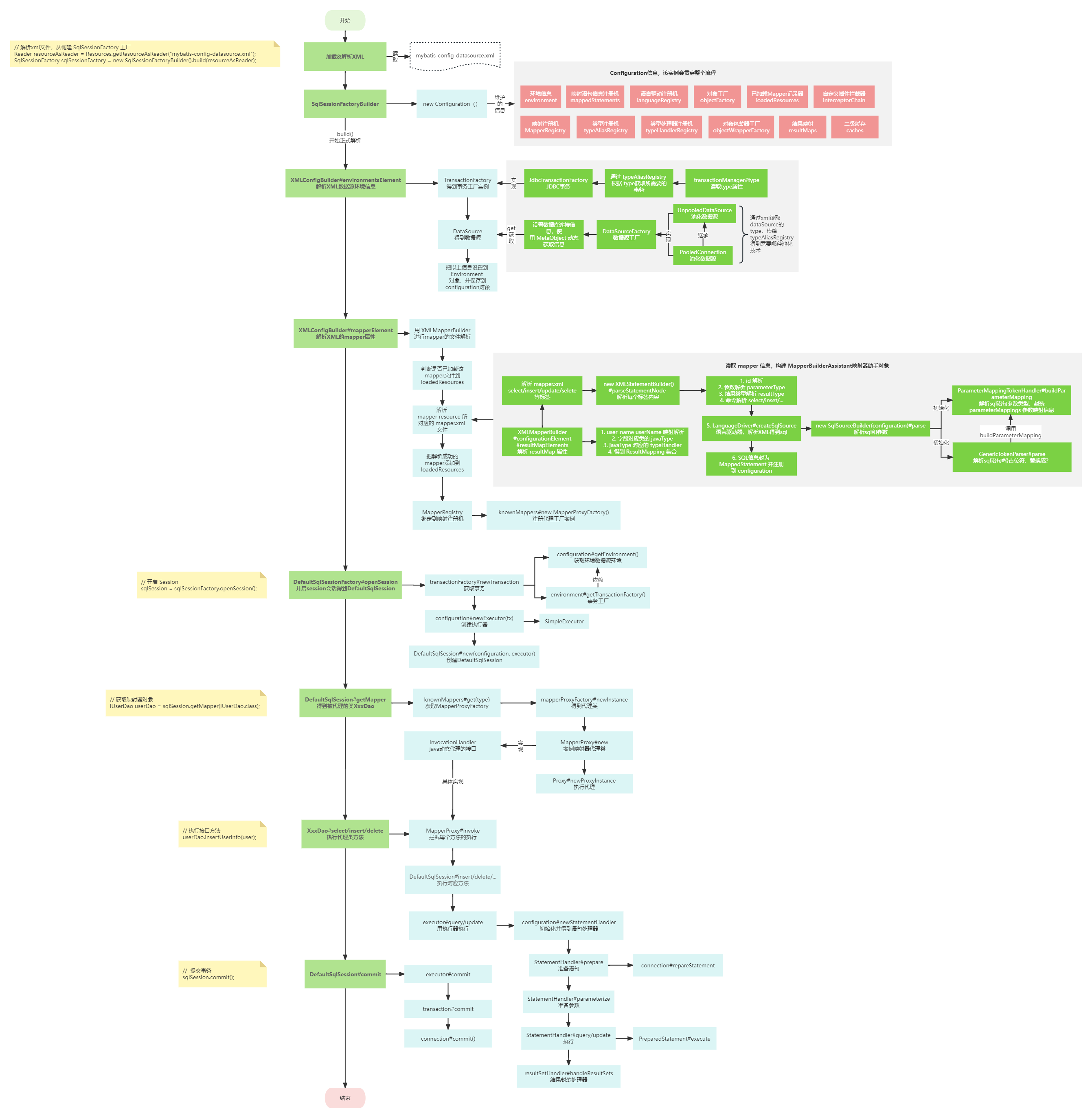 关于 MyBatis 我们主要要了解他的工作流程,特性,和部分重要的知识点,就像 Spring,我们主要是了解他的生命周期,可扩展项等,所谓生命周期,也是 Spring 的工作流程。