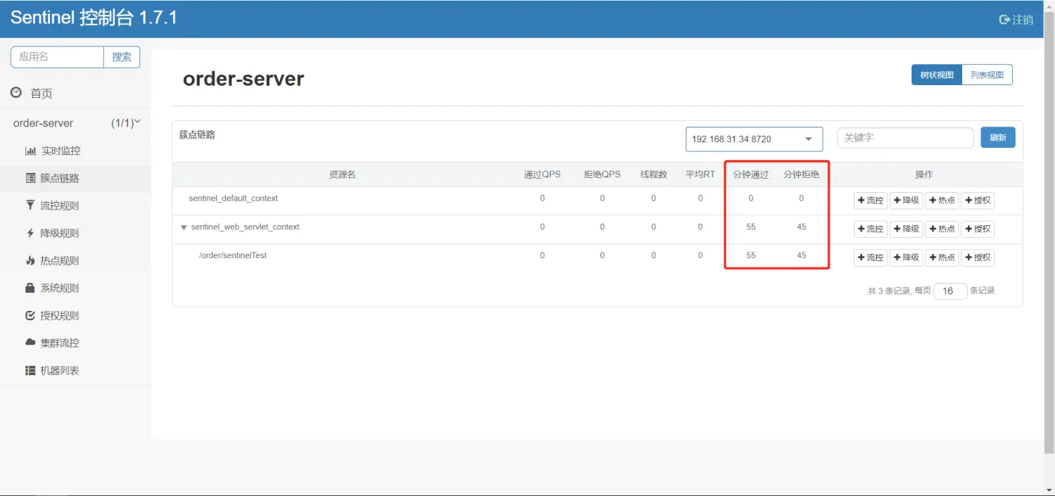 留一个疑问点,关于 FlowRule 有一个 count 的设置,如果说 Grade 为 THREAD 模式,count 到底是一个开关 还是一个数字,如果是数字,测试 count 值 0<count<3 的时候有线程拒绝,3<=count<= 无穷大 无线程拒绝,count 在 Grade 为 THREAD 模式是什么意思,限制的是什么?