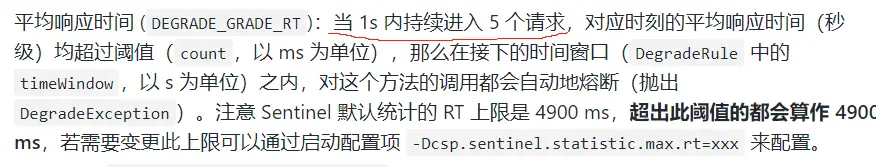 除了对并发线程数进行控制以外,Sentinel 还可以通过响应时间来快速降级不稳定的资源。当依赖的资源出现响应时间过长后,所有对该资源的访问都会被直接拒绝,直到过了指定的时间窗口之后才重新恢复。