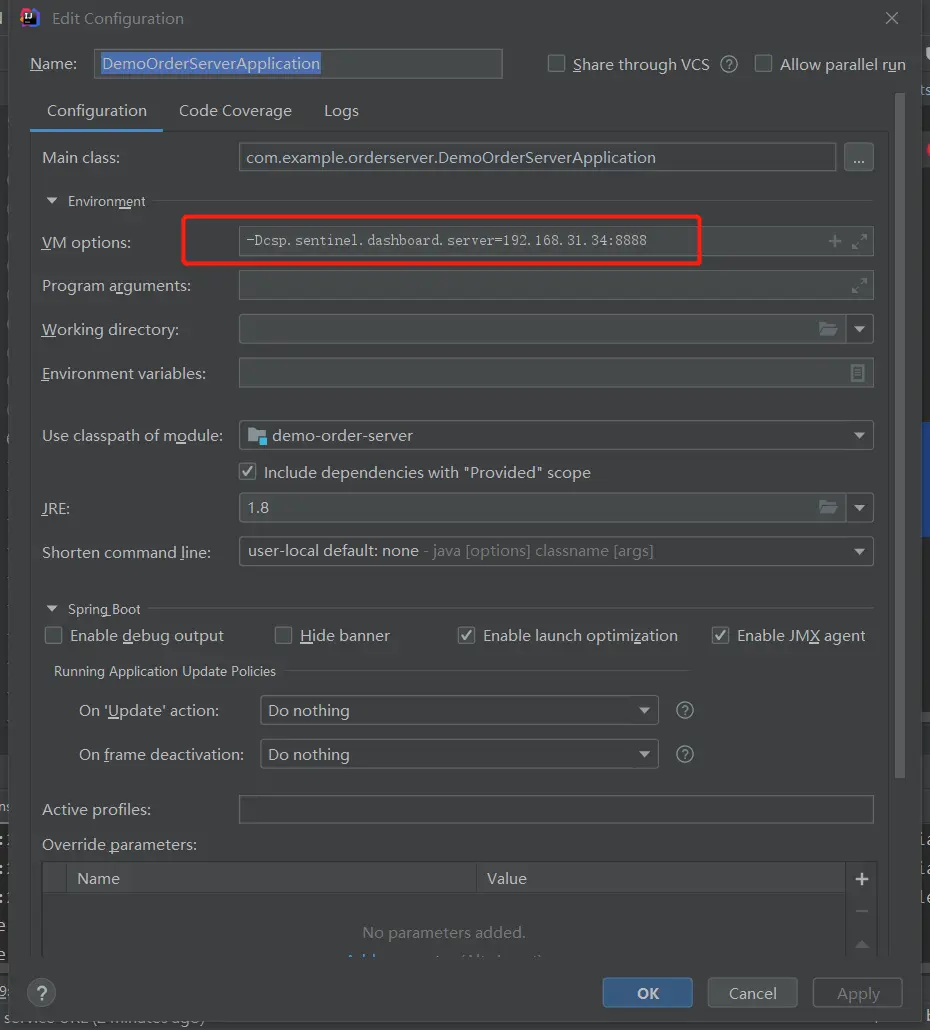 -Dcsp.sentinel.dashboard.server=192.168.31.34:8888