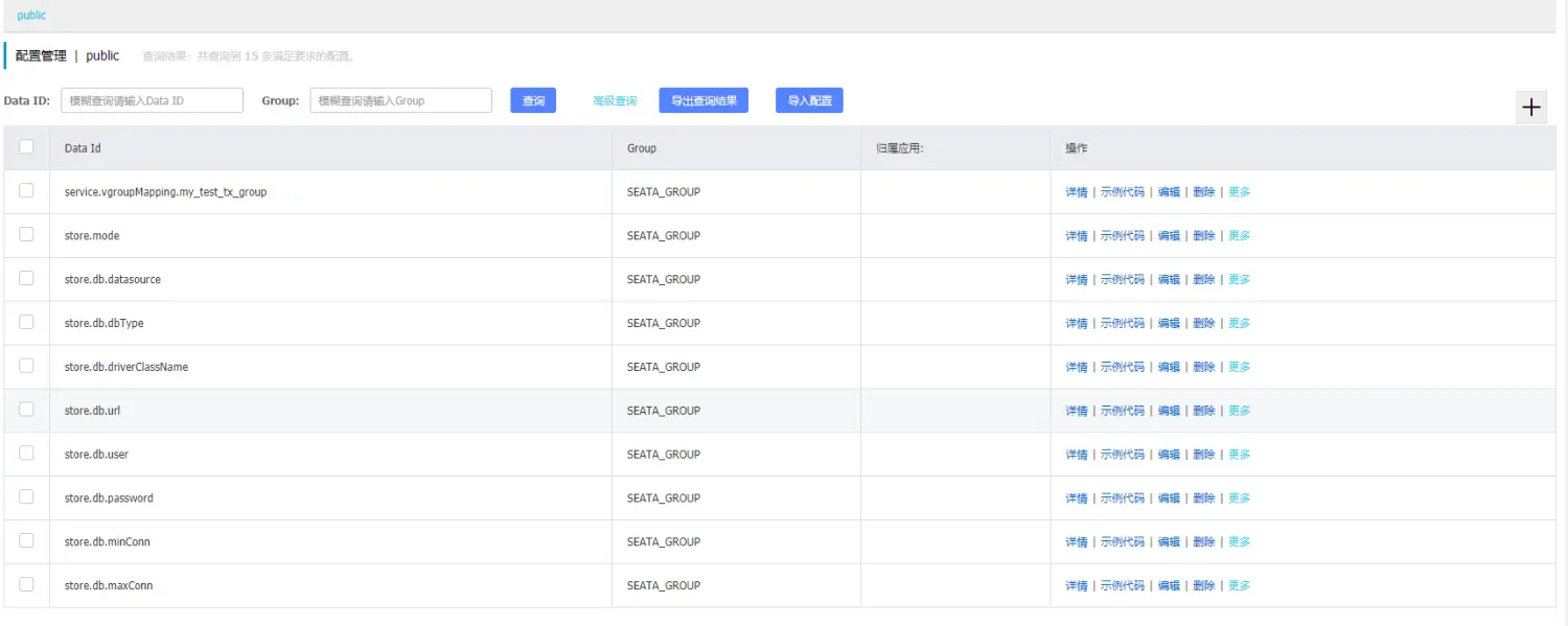 nacos 搭建好了之后,我们需要把在 seata/conf/registry.conf 里写的 config 内容配置到 nacos 里,步骤如下: