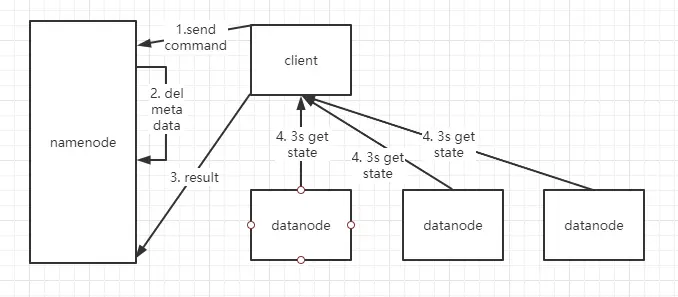 - 当客户端发起一个删除指令,这个指令会传给 namenode