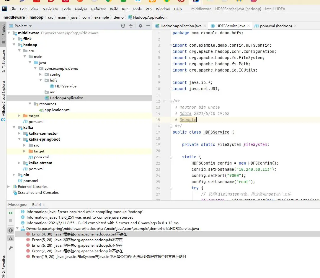 如果遇到 org.apache.hadoop.conf 或 fs 等包不存在问题