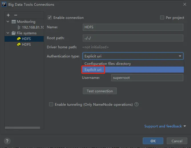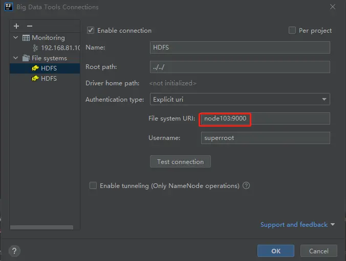 windows 开发 HDFS 或使用 big data tools 插件 都一定要配置 HADOOP_HOME,把以上下载的配置到我们系统环境变量并名命 HADOOP_HOME=D:\tools\winutils-master\hadoop-3.0.0。然后在 path 上加 % HADOOP_HOME%\bin 即可。但配置完毕后我建议直接重启,有时候配置完不会直接生效。