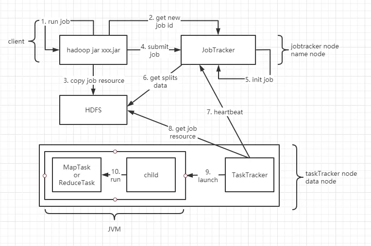- run job 检测通过,JobClient 会向 JobTracker 为当前 job 申请 jobid,jobid 是全局唯一的,用于标识一个 Job。