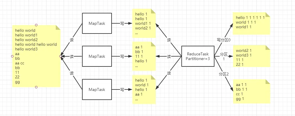 - ReduceTask 有分区的话会先分区再聚合。