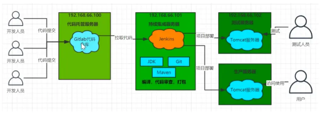 | 持续集成服务器 | 192.168.66.101 | Jenkins-2.190.3,JDK1.8,Maven3.6.2,Git,SonarQube |