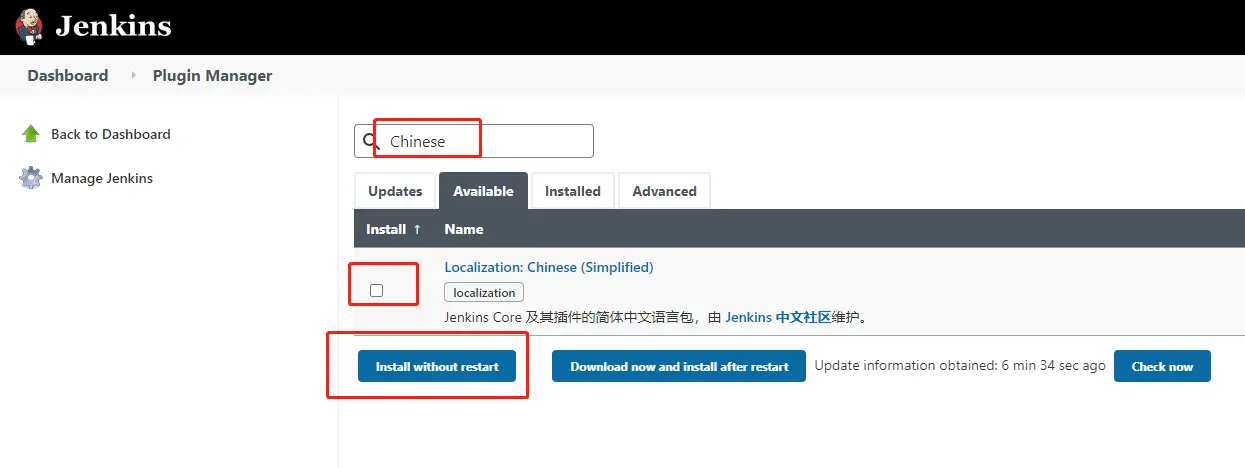 Jenkins 国外官方插件地址下载速度非常慢,所以可以修改为国内插件地址:Jenkins->Manage Jenkins->Manage Plugins,点击 Available