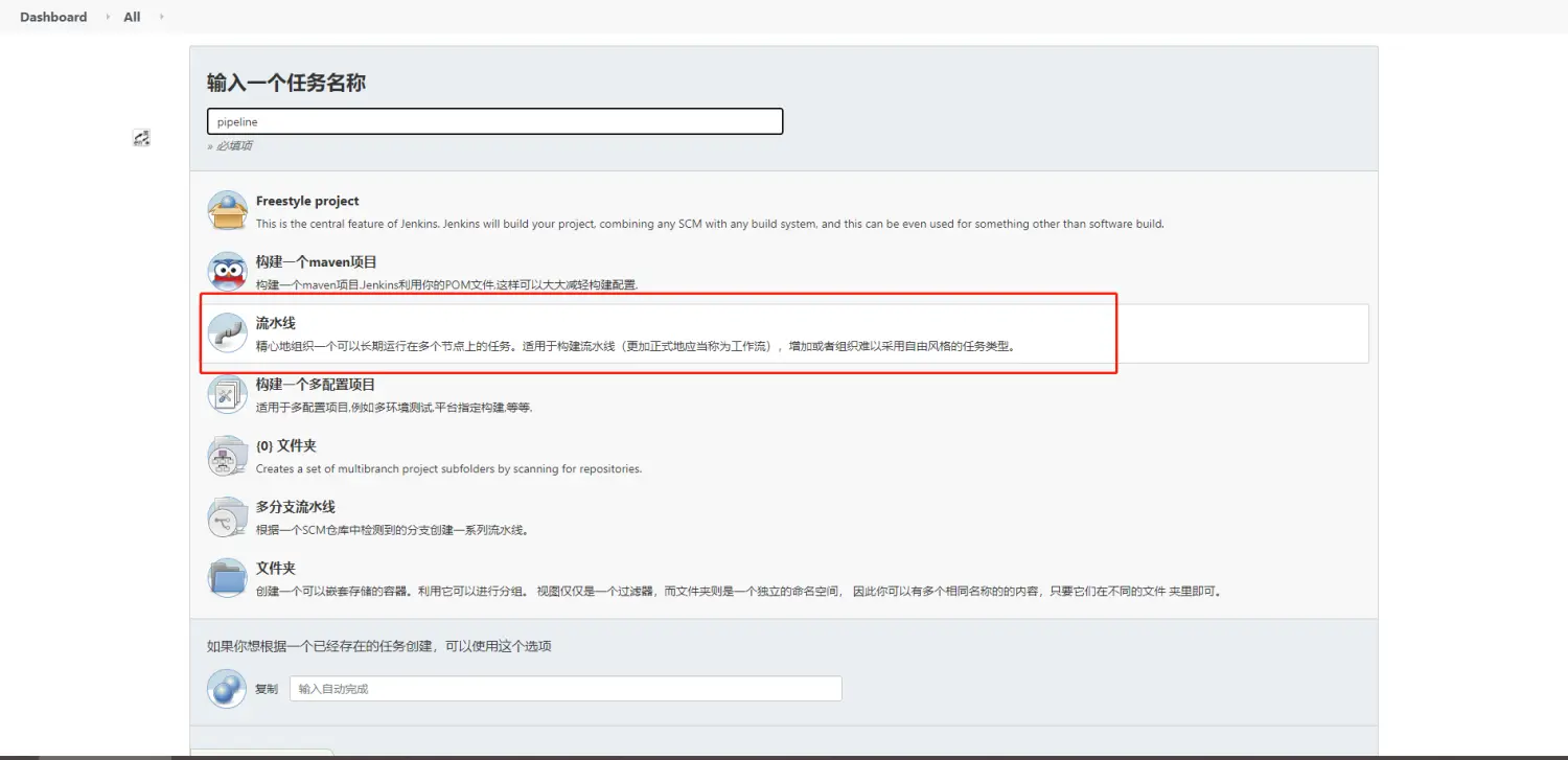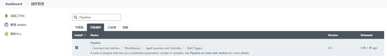 安装插件有很多依赖插件会安装失败,不用管,只要创建项目的时候多了 “流水线” 类型即可。