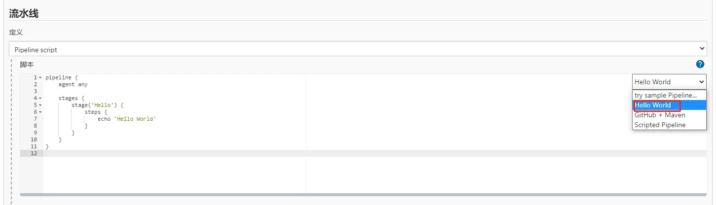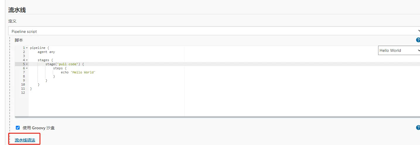 以上是基于一个声明式 **(Declarative)的 Pipeline**,以 pipeline 开头的就是声明式的。