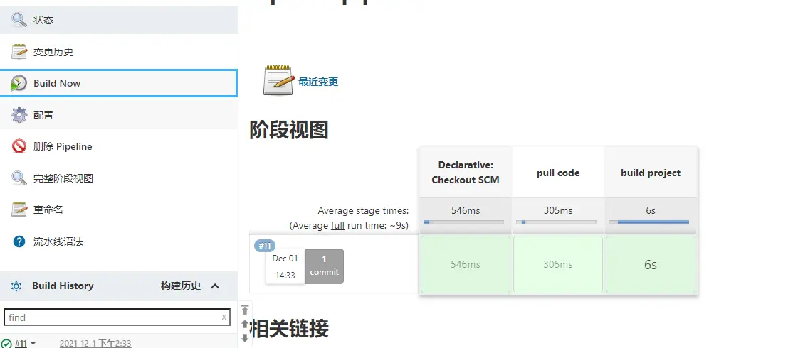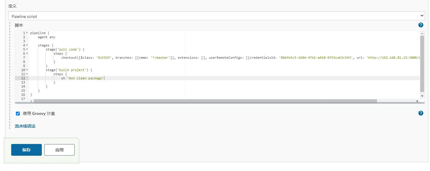你会在项目的配置中看到多了一个流水线,它就是取代了以上项目的构建和构建后的一些工作。