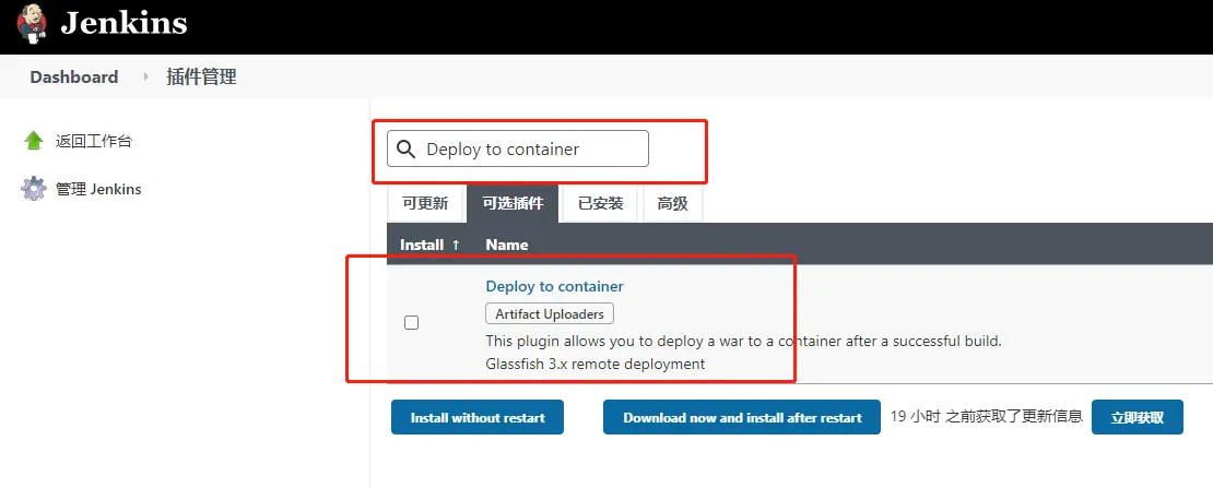 安装 Deploy to container 插件,这种插件适合发布 war 这种类型的项目,到 tomcat 等容器上去。