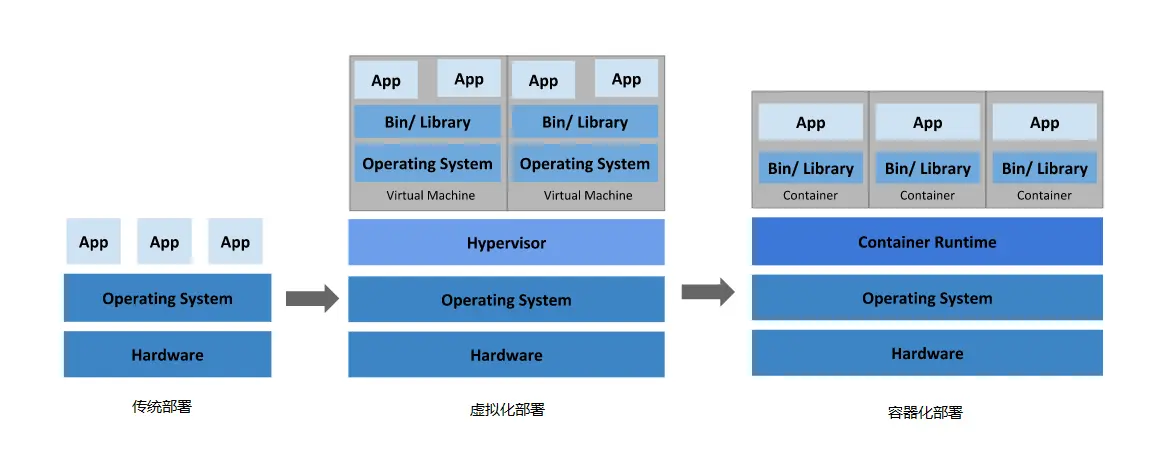传统部署:互联网早期,会直接将应用程序部署在物理机上