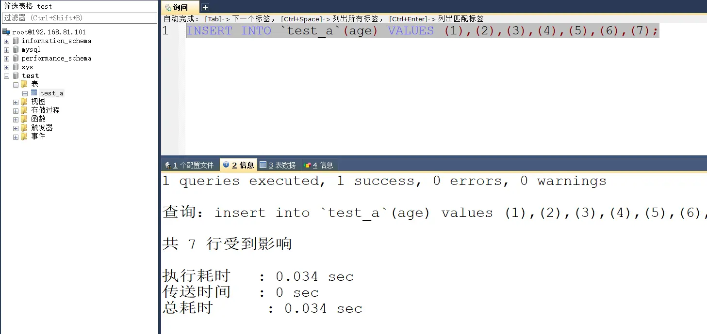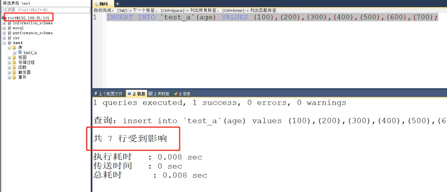 测试结果是依然额可以的。可以改为插入数据测试。