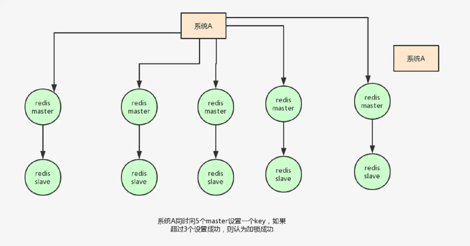 - 轮流尝试在每个 master 节点上创建锁,过期时间设置较短,一般就几十毫秒